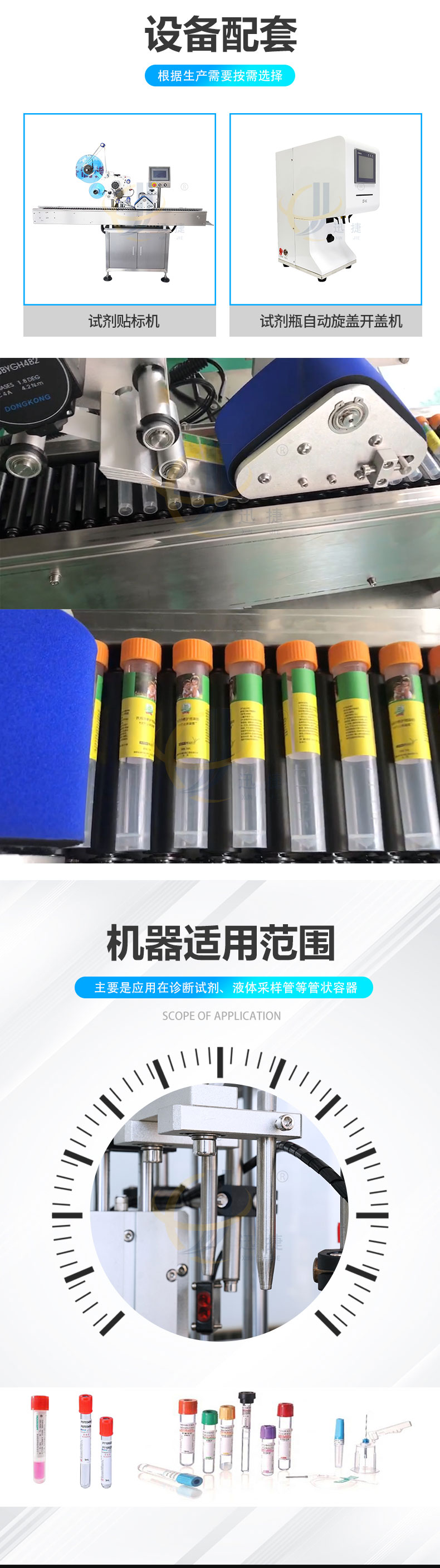 診斷試劑灌裝旋蓋機適用于診斷試劑、液體采樣管等管狀容器。本機可選配防塵罩搭配層流罩(FFU)結(jié)構(gòu),可達到局部百級環(huán)境下完成灌裝及封蓋。
