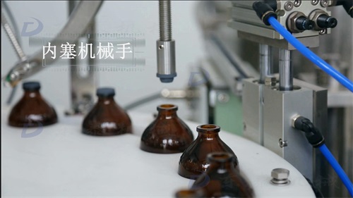 內(nèi)塞機(jī)械手將內(nèi)塞吸起來,然后精準(zhǔn)壓進(jìn)瓶口