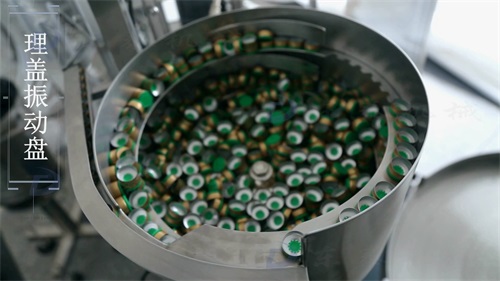 理蓋振動(dòng)盤將蓋子進(jìn)行整理,送入滑道,后滑入掛蓋頭